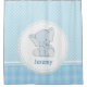 Cute Elephant Light Blue Plaid for Kids Children Shower Curtain