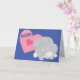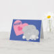 This adorable Mother's Day card features a mama and baby elephant, with a pink heart beside them. The images are placed on a blue background, with the text "MOM" on the heart. The inside has three text fields for you to customise. This card can easily be adapted to a birthday card for Mum, too! *Thanks to PrettyGrafikDesign for the images used in this design.