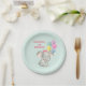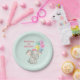 Cute Elephant with Balloons Birthday Party Paper Plates. Celebrate with this fun safari animal mint green themed design. Cute watercolor illustration of an elephant with a pink bow holding colourful balloons in her trunk.