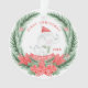 This cute White Elephant first Christmas design features a watercolor elephant wearing a Santa hat. You can add a name on a red ribbon banner and the year.