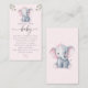 Cute Elephant Pink Books for Baby Card. Make your baby shower even more special with these adorable 'Books for Baby' enclosure cards! Featuring a sweet watercolor illustration of a baby elephant with a croquet pink bow and delicate greenery, these cards gently request guests to bring a book instead of a card. This thoughtful gesture helps build your little one's first library and adds a personal touch to their celebration. The soft blush pink background and elegant calligraphy script create a charming and memorable theme for parents-to-be. These cards are a perfect way to collect meaningful stories and well wishes for your new arrival.