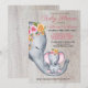 Cute Elephant Pink Floral Baby Shower Invitation