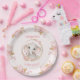 Cute Elephant Pink Girl Floral Roses 1st Birthday Paper Plate