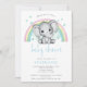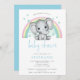 Cute Elephant Rainbow Blue Baby Shower Invitation