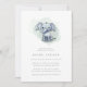 Elegant watercolor baby shower invitation that feature a cute baby elephant sitting. The other side of the card has a hand drawn grey floral vine pattern.