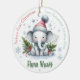 Personalise this darling watercolor baby elephant & snowflake "Baby's First Christmas" round ceramic ornament with baby's first and middle name and the year printed on both sides - the perfect custom keepsake gift for baby or new parents to cherish year after year while trimming the Christmas tree together! Happy Holidays from Fig and Lily Studios ♥