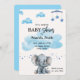 Cute Elephant Surprise Baby Shower Blue Invitation