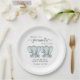 Cute paper plates for your twin boys baby shower with "Two Sweet Little Peanuts Are On Their Way" written in soft grey typography and a stylish script with swashes and blue watercolors of twin baby elephants. Personalise the mother-to-be's name and shower date in simple grey typography.