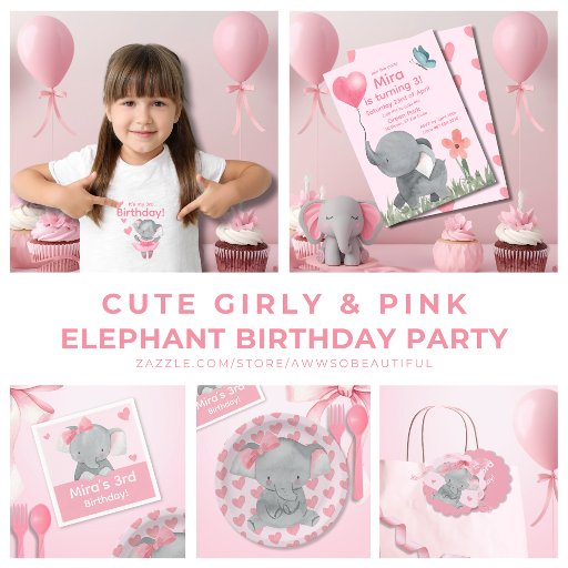 Cute Girly and Pink Elephant Birthday PartyDesigned by Amazing Beautiful Creative Designs