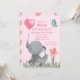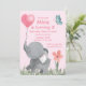 Invite all your family and guests with this cute and girly birthday party invitation. Watercolor elephant holding a heart shaped ballon, while a butterfly and flower complete the scene.