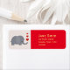 Special cute elephant with hearts personalised address labels with an art design of a very cute cartoon elephant blowing hearts against a red customisable colour background. The text is fully customisable to include your own personal details.