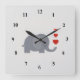 A very cute illustration of a simple minimalist cartoon elephant trumpeting red hearts out of his trunk against a light grey background. This cute and whimsical design would be perfect for kid's and children or for anyone who loves cute elephants or for Valentine's Day.
