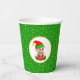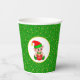Cute Elf and Golden Confetti on Green Glitter Pape Paper Cups