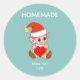 Cute elf holding a heart and Homemade text on light blue Stickers. Text can be personalised.