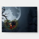 Cute Elf Child in Green Hooded Coat with Christmas Ornament – Magical Fantasy Holiday Design. A cute elf child with big eyes and pointy ears wears a green fur-trimmed hooded coat and holds a glowing orange Christmas ornament. Surrounded by gift boxes with red ribbons, pine branches, and berries, this magical holiday scene feels both festive and mystical. The dark ornate frame with a view into an enchanted forest makes this design perfect for fantasy lovers, Christmas fans, and magical holiday art.