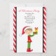 This is an adorable Christmas party invitation. It has a red and white striped background. Then there's a black thin border with a white centre. There's this cute boy elf with brown hair. He is dressed in red and green wearing a santa hat. Personalise with party information above them. Check out the many other designs and products we have in Christmas invitations. © JW Illustrations