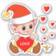 Cute love elf with magic lamp and hearts Stickers. Text can be personalised!