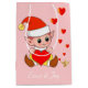 Cute love elf with magic lamp and hearts on light pink background. Text can be personalised. Expression of affection and love for all events!