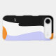 This iPhone 4 Case-Mate Barely There case features a cartoon of an Emperor Penguin in three colours: a black back and wings, white front, black and white eye, and orange feet and beak. It's more of a stylised cartoon as the use of orange in the cartoon doesn't exactly match the orange patches on a real Emperor Penguin but a cute penguin design nonetheless.