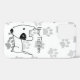 Cute little English Bull Terrier, white with black eye patch, over a background of grayscale paw prints...classical!