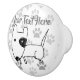 Cute little English Bull Terrier, white with black eye patch, over a background of grayscale paw prints...classical!