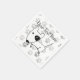 Cute little English Bull Terrier, white with black eye patch, over a background of grayscale paw prints...classical!