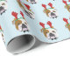 NewParkLane - Christmas Wrapping Paper for dog lovers, featuring a cute patterns of English Bulldog cartoons, wearing a Christmas reindeer hat, against a soft blue background.