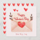 Valentine's day greeting card featuring a cute watercolor envelope with happy valentine's day wishes on the front and a pattern of red hearts on the back. Check out our store for more items from this collection.