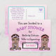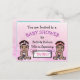 Here are cute hand drawn baby girl twins Baby Shower invitations. Personalise these by adding your party's information in the personalise area. Pink background with a cute girl baby twin in each corner. These postcard invitations are a very affordable way to get pre made personalised baby shower invitations. These little baby girls are to represent African-American babies.