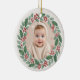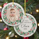 Celebrate a precious first holiday season with this cute eucalyptus Baby First Christmas photo ceramic ornament. Soft greenery accents frame your little one’s photo with a sweet, natural charm. The minimalist layout keeps the focus on your baby, while crisp print quality and a polished finish make this ornament a heartfelt keepsake or thoughtful holiday gift.