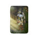 A Fantasy themed design with a little fairy and her white mouse friend featuring a backdrop of mushrooms green grass and beaming light sky.