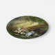 A Fantasy themed design with a little fairy and her white mouse friend featuring a backdrop of mushrooms green grass and beaming light sky.