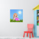 Cute fairy elf and daisy flowers on sunny light blue background. Ideal for nursery, kids room and more.