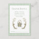 Charming and delicate baby shower diaper raffle enclosure card featuring a soft pastel palette with a green gingham frame. The design incorporates sweet illustrations of fairytale accents in sweeping greens and vines. The design also has soft hues of blue blush pink, sage green. Whimsical flowers and greenery surrounds the sweet animal graphic giving it an elegant yet playful touch. Perfect for welcoming any gender baby.