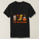 A cheerful cartoon bearded dragon with a scarf stands between a pumpkin and a fall drink, surrounded by autumn leaves and the words "'Tis the Season."