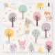 Cute Fall Forest pattern featuring woodland animals like: fox, mouse, reindeer and cat. Including trees, kites and mushrooms in muted fall colours on cream background. Perfect for your little ones nursery.