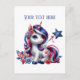Cute fantasy unicorn add message July 4th Holiday Postcard