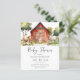 Get ready to welcome a little bundle of joy with our adorable baby shower invitation featuring a watercolor farm scene with cute animals. The affordable paper invitation is set against a clean white background.