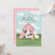 Celebrate your girls 2nd birthday with this cute farm animal barnyard invitation featuring a watercolor style pink barn, baby pig, cow, sheep, and chick. Fun and colorful, with “Oink, Baa, Moo – [Name] is turning two!” on the front and classic pink gingham on the back. Perfect for a toddler’s farm birthday party!