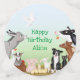 Celebrate a child's birthda in style with this cute farm animal friends table confetti. Featuring a donkey, a goose, a hen and her chicks, a baby goat, a piglet, a rabbit, two lambs, a border collie, a black cat and a cow and her calf, the confetti can be personalised however you like.