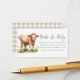 Request books for your baby's future library with our adorable baby shower books for baby enclosure cards featuring a cute cow. The design is set against a clean white background.