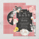 Adorable barnyard animals design featuring the sweetest cow, horse, pig, roaster, duck, baby chick & sheep set on a red gingham background. Flip our card over to view a special surprise with our cute farm friends. Visit our shop to view our entire cute barnyard friends collection for neutral, girls or boys baby shower.