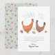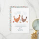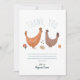This cute and trendy baby shower thank you card design features a chicken illustration, with a matching blue farm pattern on the back, with flowers, chicks, and eggs. The thank you card can be personalised with the parent's (or child's) names. The perfect gender neutral farm themed addition to your co-ed couples baby shower.