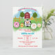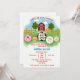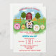 The cute birthday invitation features farm animals (cow, sheep, pig, rabbit, and chicken) form into balls as they are ready to play balls.