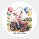 Cute Farm Pig On A Tractor 1st. Birthday Party Classic Round Sticker