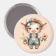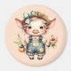 Cute Farmcore Pig in Overalls with Flowers Magnet