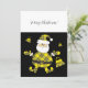 Cute Fashion Yellow Tartan Santa With Purse Holiday Card