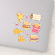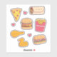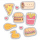 A cute food doodles sticker pack collection which includes popular takeaway fast food items such as Mexican burrito, slice of pizza, submarine sandwich, fried chicken, hamburger and French fries.