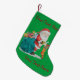 This original christmas stocking has a picture of Santa Claus with his sack filled with gifts all wrapped and ready for the Christmas day delivery, you can see a yellow teddy with a red bow and a blue bunny just poking out of the top of the green sack. Father christmas is holding a colourful red and gold striped christmas stocking that has a candy stick and smaller gifts in it, he is also holding a small wrapped gift in his hand The cute illustration is produced from an original water colour painting that I created a few years ago. The colourful and traditional festive image looks great on this cute stocking. I think this original christmas stocking will be perfect for the Christmas fire place. This is a customisable stocking , you can personalise it with your own text.