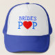 Wedding rehearsal time? Blue and white cap for the father of the bride to wear to designate his special status during wedding rehearsal...and afterwards, too. A red love heart substitutes for the "O" in "POP."
